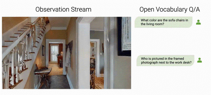 Interacting with an agent on OpenEQA datasetWe present a modern formulation of Embodied Question Answering (EQA) as the task of understanding an environment well enough to answer questions about it in natural language. An agent can achieve such an understanding by either drawing upon episodic memory, exemplified by agents on smart glasses, or by actively exploring the environment, as in the case of mobile robots. We accompany our formulation with OpenEQA - the first open-vocabulary benchmark dataset for EQA supporting both episodic memory and active exploration use cases. OpenEQA contains over 1600 high-quality human generated questions drawn from over 180 real-world environments. In addition to the dataset, we also provide an automatic LLM-powered evaluation protocol that has excellent correlation with human judgement. Using this dataset and evaluation protocol, we evaluate several state-of-the-art foundation models like GPT-4V and find that they significantly lag behind human-level performance. Consequently, OpenEQA stands out as a straightforward, measurable, and practically relevant benchmark that poses a considerable challenge to current generation of AI models. We hope this inspires and stimulates future research at the intersection of Embodied AI, conversational agents, and world models.